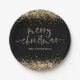 Gold Glitter Merry Christmas Party Black Paper Plate