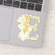 Elegant gold glitter monogram letter E. This monogram glitter letter E initial is a beautiful golden tone of shine and sparkle. Pretty flowers show special occasion and celebration. Modern look sticker can be used on greeting cards, wedding invitations, thank you cards, stationery, gift wrapping and many more.