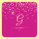 Gold Glitter & Monogram White Script Name, Fuchsia Coaster