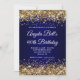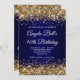 Gold Glitter Navy Blue Ombre 90th Birthday Invitation