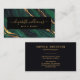 Gold Glitter Navy Green Agate & Signature Script Business Card