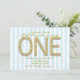 GOLD GLITTER ONE Blue Stripe 1st Party Invitations