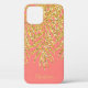 Glamourous gold faux glitter tropical palm tree fronds on a coral peach background on ANY cell phone STYLE - just choose your model. LOTS OF COLORS to choose from in our store.