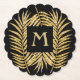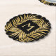 Stylish, elegant faux gold glitter tropical palm tree fronds on a black background with a gold monogram initial inside a black square is featured on these 4 inch SCALLOPED ROUND heavy paper coasters (SET OF SIX.) Adds a beautiful touch to your home decor or give as a housewarming, open house or Christmas gift. DON'T WANT PAPER? We've got plastic, stone and glass coaster templates created for you. **ALL SHAPES ALREADY CREATED IN OUR STORE. See MATCHING items in our store.