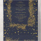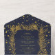 Gold glitter pine, confetti midnight blue wedding all in one invitation