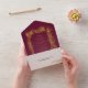 Gold glitter pine frame burgundy winter wedding all in one invitation