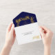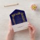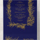 Gold glitter pine frame navy blue winter wedding all in one invitation