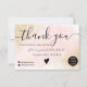 Modern gold glitter ombre and pink brushstroke watercolor business order thank you. Add your social media. With an elegant signature script font, all the colours are editable , add your logo.