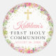 Gold Glitter Pink Floral First Holy Communion Classic Round Sticker