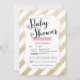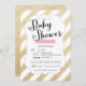 Gold Glitter & Pink Stripes Baby Shower Invite