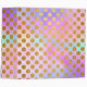 A pattern of faux glitter polka dots on a colourful rainbow pastel gradient background.