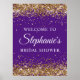 Gold Glitter Royal Purple Bridal Shower Welcome Poster