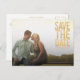 Gorgeous faux gold glitter  typography on the front of this designer postcard which you can upload into with your own engagement/save the date photo portrait. Easily and quickly personalize this designer professionally printed save the date postcard here and now by just typing over the example text and adding your own photograph. Elegant, chic, simple and classy gold block letters glitter glitz typography