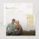Gorgeous faux gold glitter typography on the front of this designer postcard which you can upload into with your own engagement/save the date photo portrait. Easily and quickly personalize this designer professionally printed save the date postcard here and now by just typing over the example text and adding your own photograph. Elegant, chic, simple and classy gold block letters glitter glitz typography
