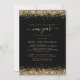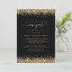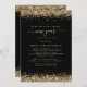 Elegant Gold Glitter Script Black New Years Eve Party. A glam faux glitter border is on each side top and bottom on a classic black background, and New Year is in a stylish script with swashes. Easily personalise the text to your own details. You can also change the text and background colours via the customise further option if you wish.