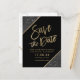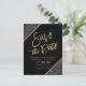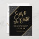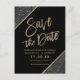 Gold typography on customizable black glitter gold glitter colour block, and faux gold geometric stripes chic save the date wedding , perfect for elegant, stylish wedding,
