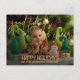 This customizable Christmas postcard features the words Good Tidings & Cheer in gold glitter script. Replace the placeholder photograph with one of your own festive ones and personalize the card to your liking.