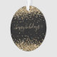 Gold Glitter Sparkle and Shine Happy Holiday Black Ornament