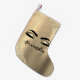 Gold Faux Foil Metallic Sparkle Glitter Brushed Metal Monogram Name and Initial Eyelashes (Lashes), Eyelash Extensions and Eyes Holiday Christmas Stocking. The design makes the perfect Christmas gift for someone looking for a trendy cool style.