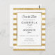 With a classic gold glitter stripes, this elegant save the date card features an elegant faux gold foil border framing your save the date details set in chic typography. Designed by Thisisnotme©