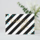 Black and white diagonal stripe with gold glitter-look and turquoise sprinkles modern thank you card.