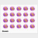 A cute pink and purple unicorn sticker with a glittering, golden unicorn prancing on its back legs, over fluffy purple clouds. Around the unicorn are shining gold stars, and underneath is a pretty shade of pink.