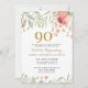 Gold Glitter & Watercolor Flowers 90th Birthday Invitation
