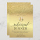 Gold Glitter Wine Glass Flowers Rehearsal Dinner Invitation