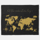 Gold Glitter World Map on Black Elegant Adventure Fleece Blanket