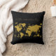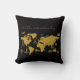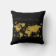 Gold Glitter World Map on Black Elegant Adventure Throw Pillow