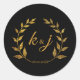 Gold Glitter Wreath Monogram Wedding Save the Date Classic Round Sticker