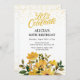 Gold Glitter Yellow Floral Birthday Party Invitation