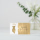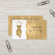 Glamourous dress seamstress business card, with graphics of a gold glittery cocktail dress, against a white and gold tone background, with gold glitter looking accents. Personalize the text to suit your business needs. A lovely stand out card for your tailoring business.