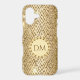 Here's a glamourous monogram phone case that grabs attention, but is in good taste, too. It features your monogram on a circle banner that is lined with sparkly faux gems. The monogram banner is placed on a geometric diamond pattern background in tones of brown, tan, and gold, with a sparkly light overlay. Pretty!