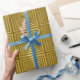 Decorative and elegant gold gift wrapping paper featuring shiny gold squares intricately linked to produce a captivating 3D illusion.