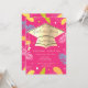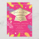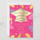 Gold Grad Cap Tropical Leaves Pink Graduation Invitation