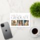 Celebrate your graduate with this elegant graduation party invitation featuring "Graduate" in gold foil alongside a three-photo collage on a clean white background. The back displays "Grad Party" event details in a sophisticated black serif and script typography pairing. All text is fully customizable, including the graduate's name, school, and event details.