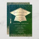 Gold Graduation Cap,Diamonds Green Graduation Invitation