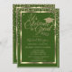 Gold Graduation Cap Diamonds Green Graduation Invitation
