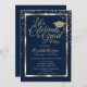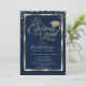 Gold Graduation Cap Diamonds Navy Blue Graduation Invitation