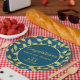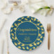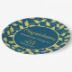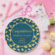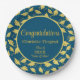 Gold Graduation Caps Tossed on Blue Personalized Paper Plate