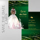 Celebrate your love story with this elegant Gold and Green African American Bride Save the Date Card. Featuring a stunning design with a radiant bride illustration, gold accents, and lush green details, this card perfectly sets the tone for your special day. Ideal for modern weddings with a sophisticated and timeless theme, it’s a beautiful way to let your guests mark their calendars. Personalize it with your wedding details to make it uniquely yours!