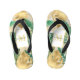 Gold Green Big Tropical Leaves Pair of Flip Flops