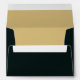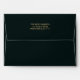 Elegant Christmas holiday envelopes feature a design of pine branches, green and gold Christmas ornaments and ribbons on a deep green background with your return address on the back and a decorative gold box to write in your recipient's address. MATCHING invitations and more items in our collection.