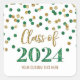 Custom name class of 2024 graduation stickers with gold and green confetti pattern with modern lettered style text.