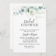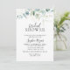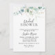 This gold green leaves calligraphy bridal shower invitation is perfect for a rustic shower celebration. The design features elegant watercolor green and gold eucalyptus leaves.