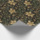 Gold & Green Leaves Wrapping Paper on Dark Back