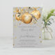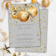 Gold on grey Christmas wedding invitation with a gold ornament that says 'Tis the Season to be Married' modern wedding invitation for an elegant Holiday wedding.