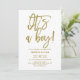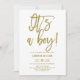 Customizable baby shower invitation featuring gold hand-lettered script with stripes pattern. Modern and unique, perfect for any baby shower theme. This "It's a Boy" baby shower invitation is available in other colours.