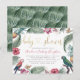 If you are planning a couple's baby shower or any tropical themed baby shower this invitation will be ideal for you. This design is inspired by the tropics so it features botanical palm leaves, pineapples, hibiscus flowers, orchids, bird of paradise and parrots. "Baby shower" appears in a chic faux gold foil in a modern handwritten script. Reversing to a pattern of palm leaves.